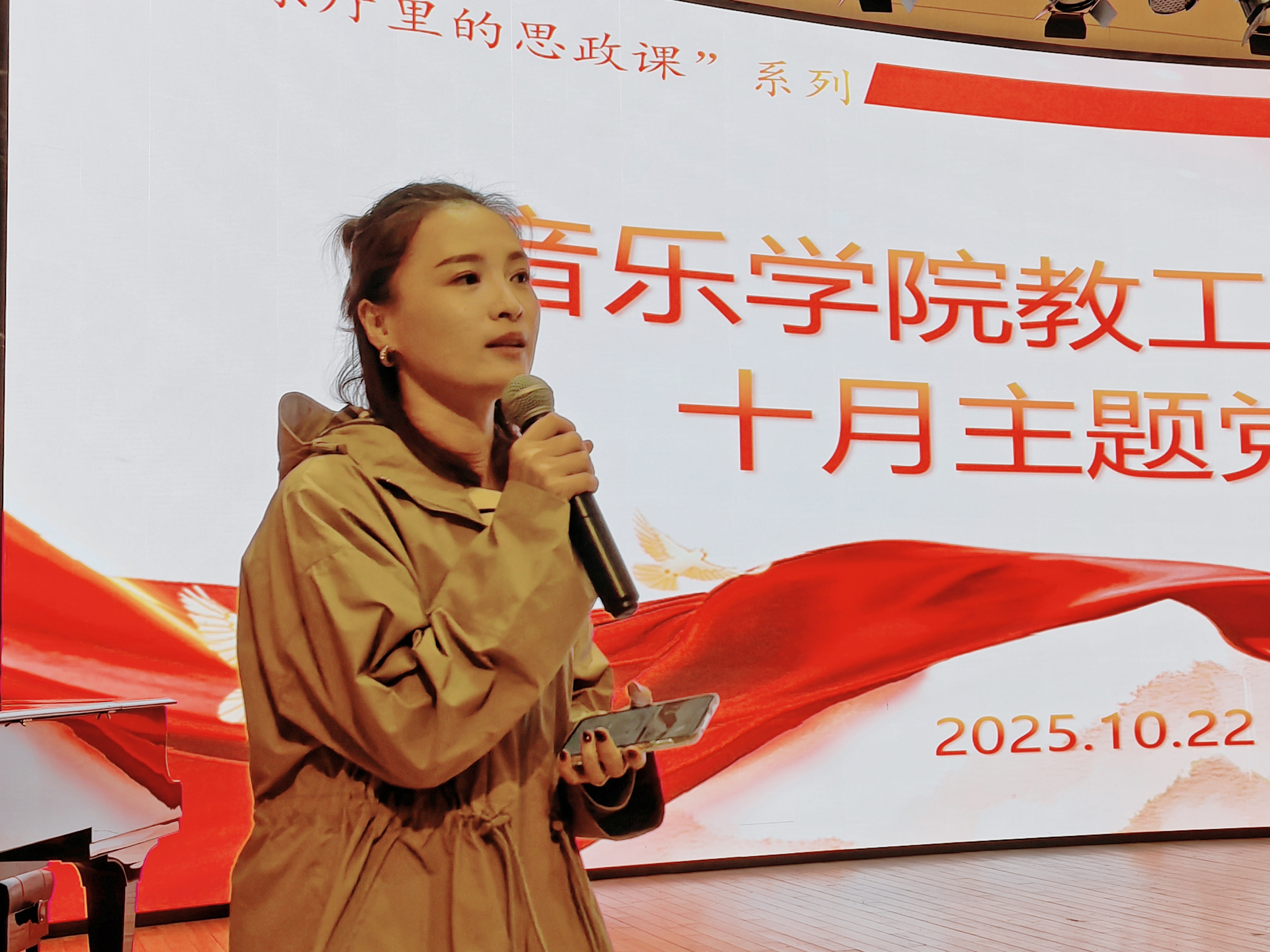 10月22日下午,樱花影视 西林音乐厅内乐音袦绕、舞影翩跹,一场别开生面的党日活动在此精彩上演。此次活动由学院学术副院长、教工支部副书记杨欣欣老师主持,打破传统会议室学习的常规模式,创新性地走进音乐厅,以欣赏红色题材舞剧《秀水泱泱》为载体,将音乐舞蹈艺术与思政教育深度融合,精心打造“音乐厅里的思政课”这一特色党建品牌,让思政学习在艺术氛围中焕发出全新的活力。