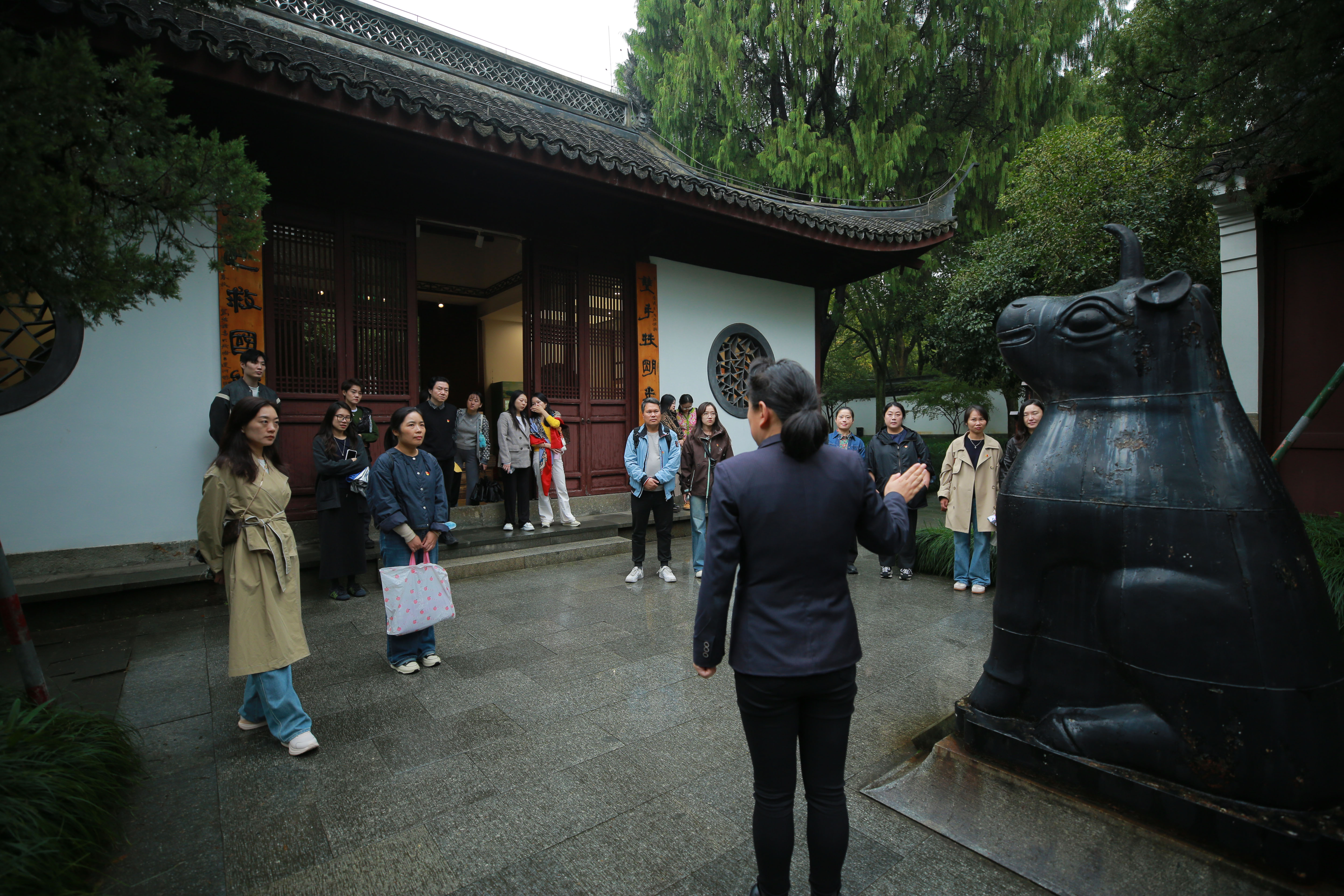 晌午时分,秋游队伍抵达三台山的于谦祠。在讲解员的引导下,教职工们驻足聆听这位明朝忠臣"粉身碎骨浑不怕,要留清白在人间"的壮烈生平。老师们纷纷感慨道,"于谦的精神与艺术工作者的职业操守异曲同工,都需坚守初心、不畏艰难。"祠内陈列的碑刻文物与庭前苍松翠柏相映,让秋日的肃穆更添一份厚重。