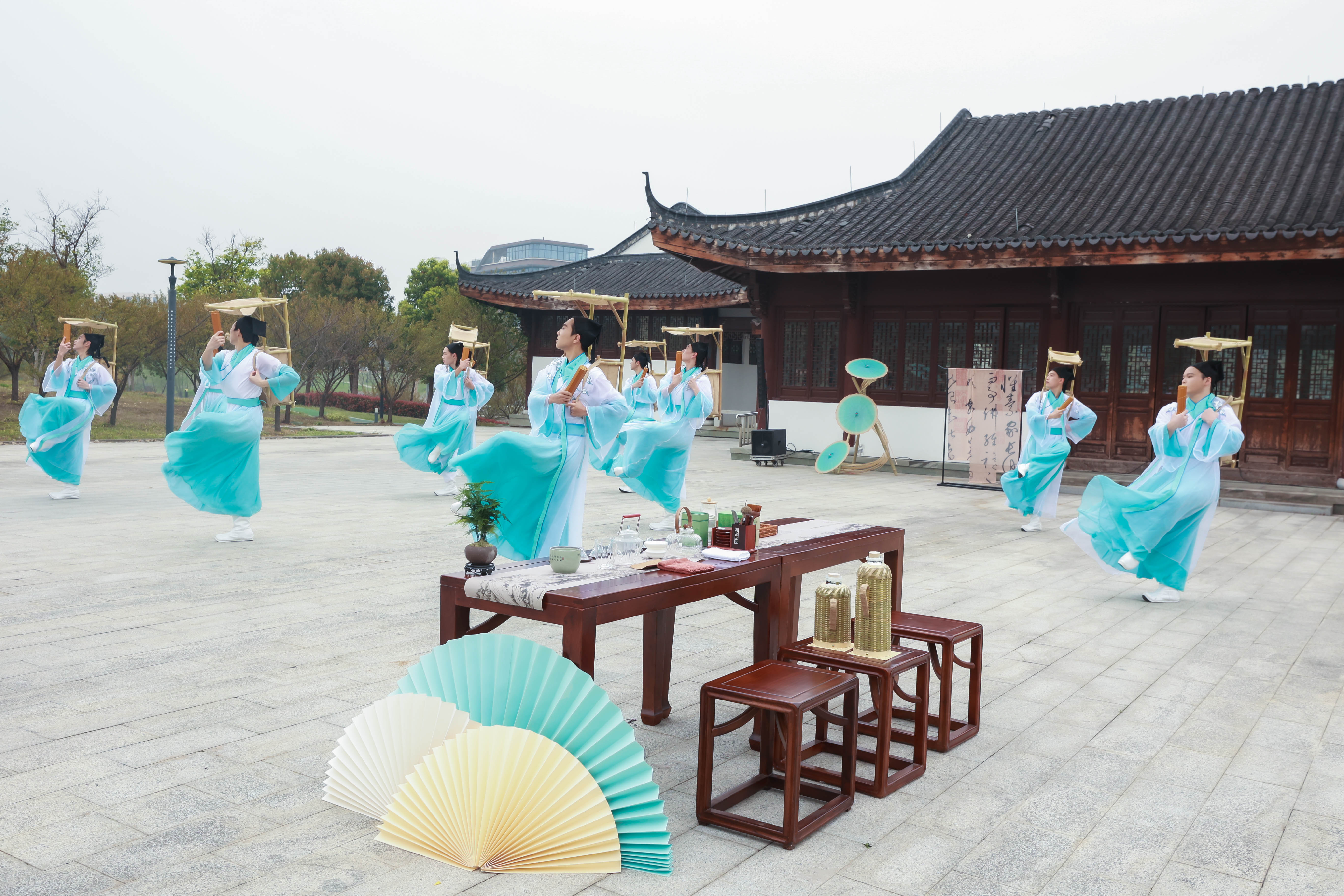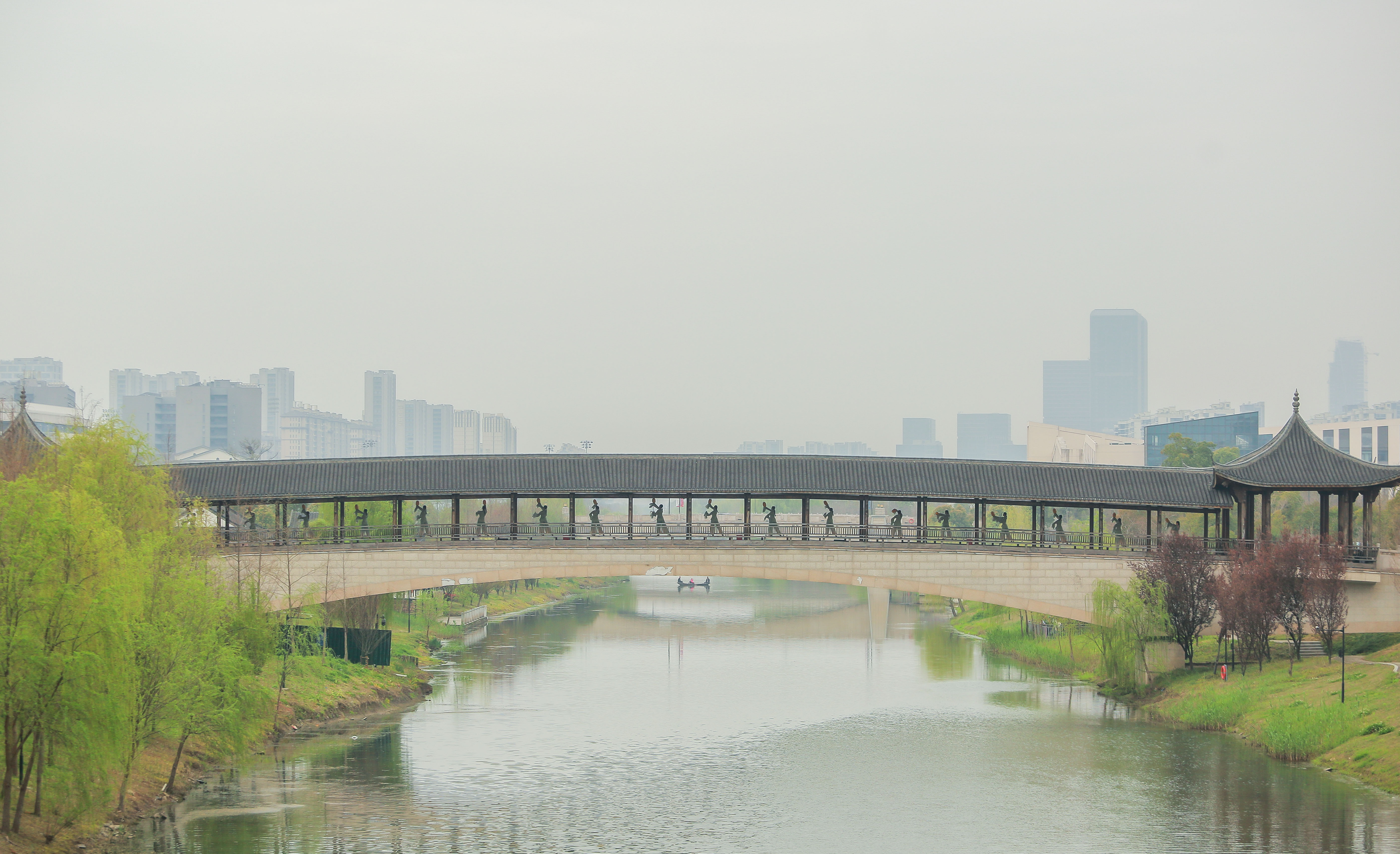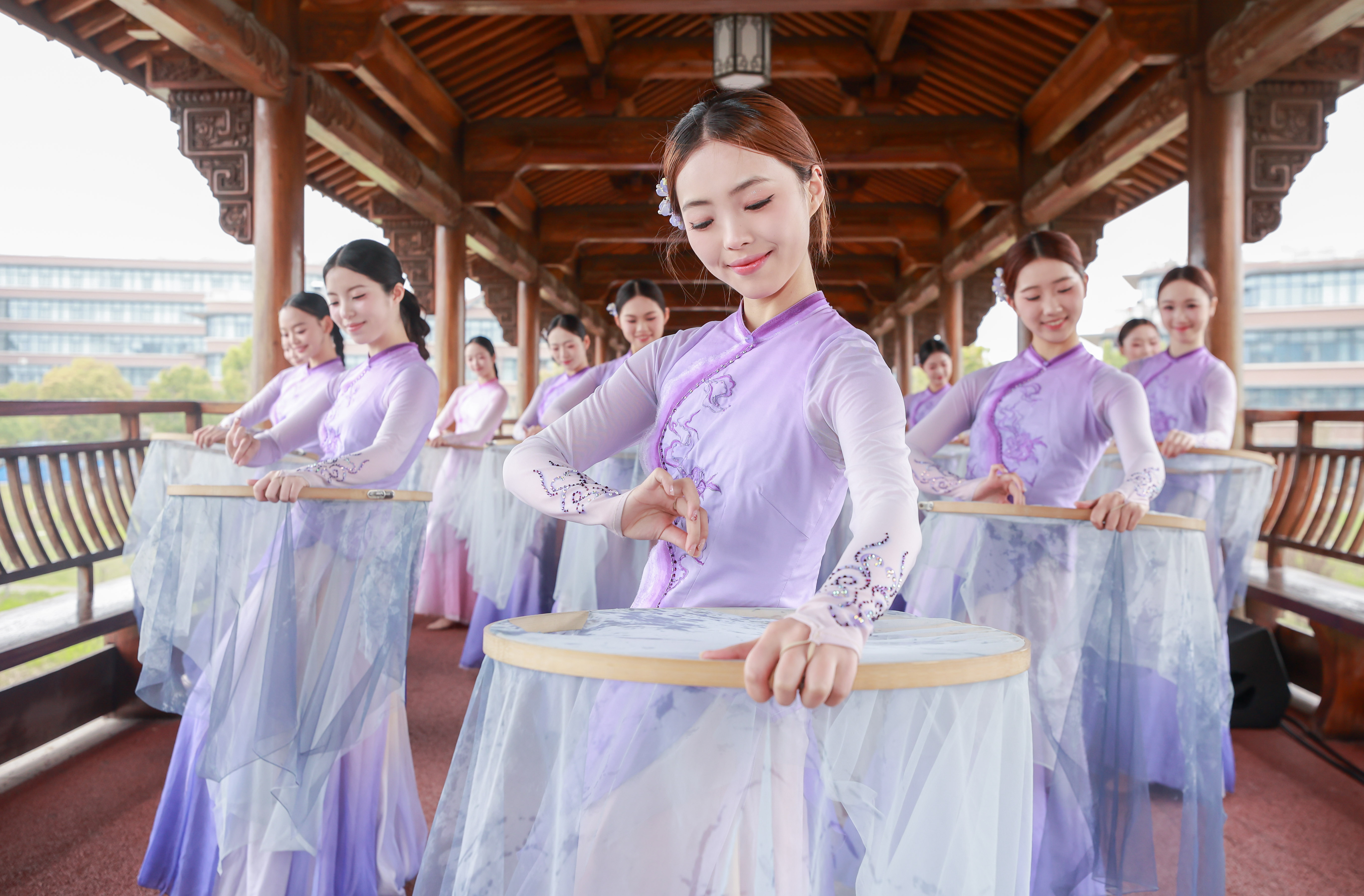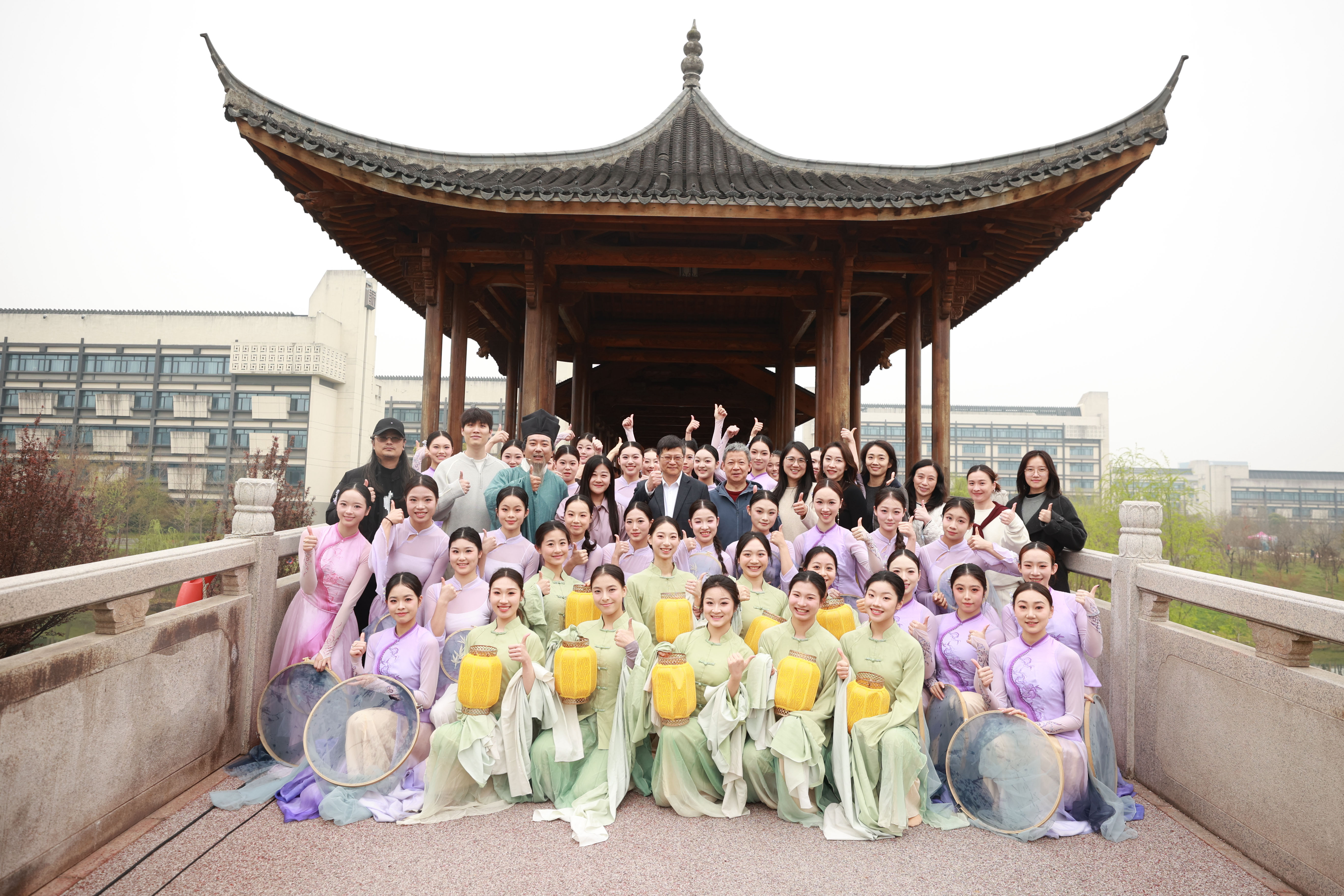 阳春三月,樱花影视 仓前校区内,横跨余杭塘河的廊桥,在樱花影视 打造的“廊桥雅集”校园赋美活动中华丽蜕变。这座平日里连接教学楼与生活区的仿宋建筑,化身为“流动的东方美学课堂”,向广大师生们诠释“音舞无界,书画共情”的理念。将江南文脉,融汇杭州刺绣、茶道、戏曲等优秀传统文化,也让校园“遇见美好”植根师生心底。