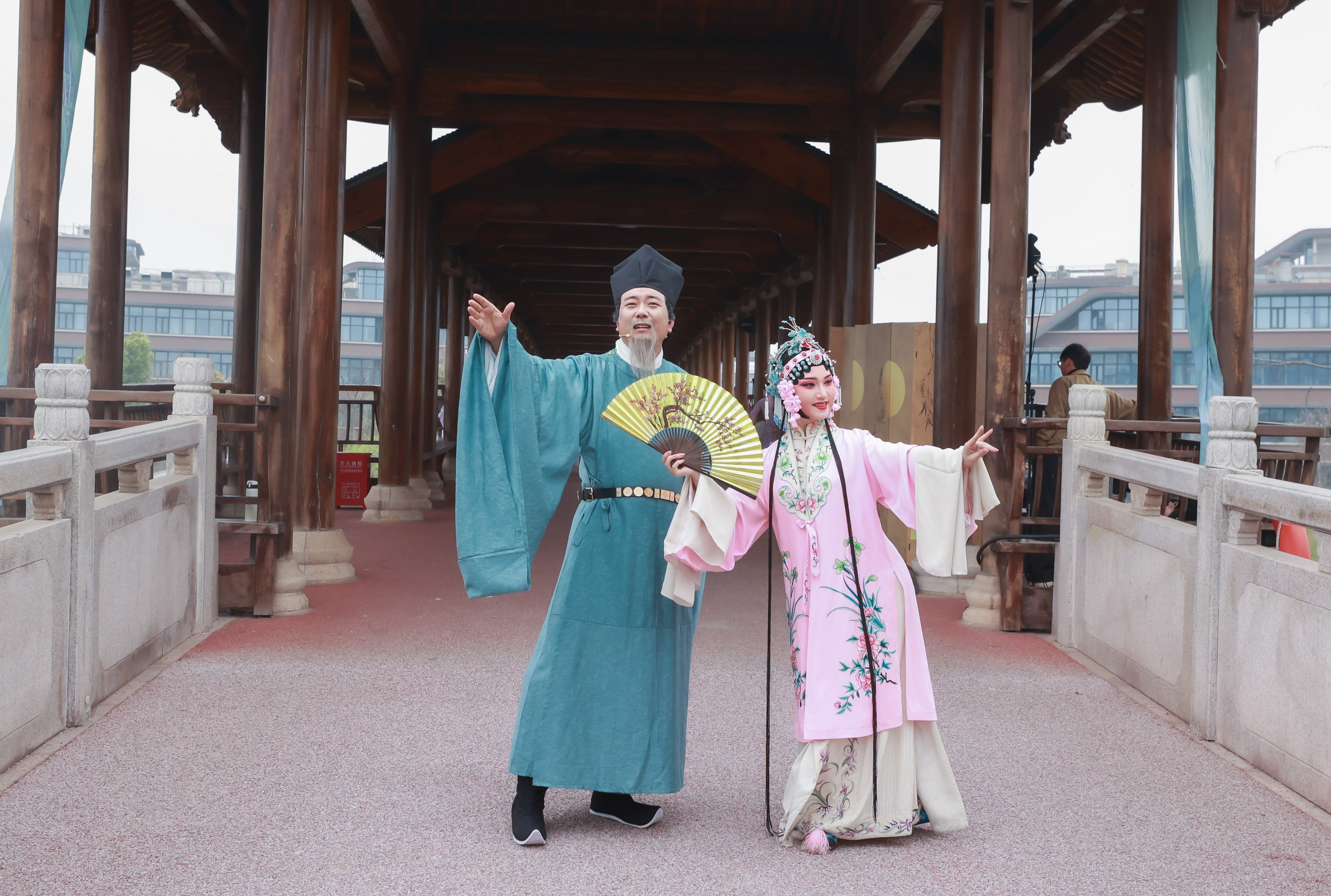 没有固定的舞台,没有隔开的观众席,“廊桥雅集”从一开始就打破了传统演出的边界。塘河码头、廊桥、草坪,被串联成一条完整的观演动线,让艺术不再是遥不可及的舞台符号,而是融入行走生活场景的鲜活体验。